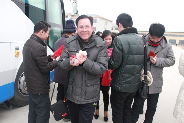 2013年02月17日,春节假日后第一天上班,总经理刘易雯携港圣公司管理人员向公司员工拜年发红包、送糕点,祝大家蛇年工作顺利、生活步步高升。