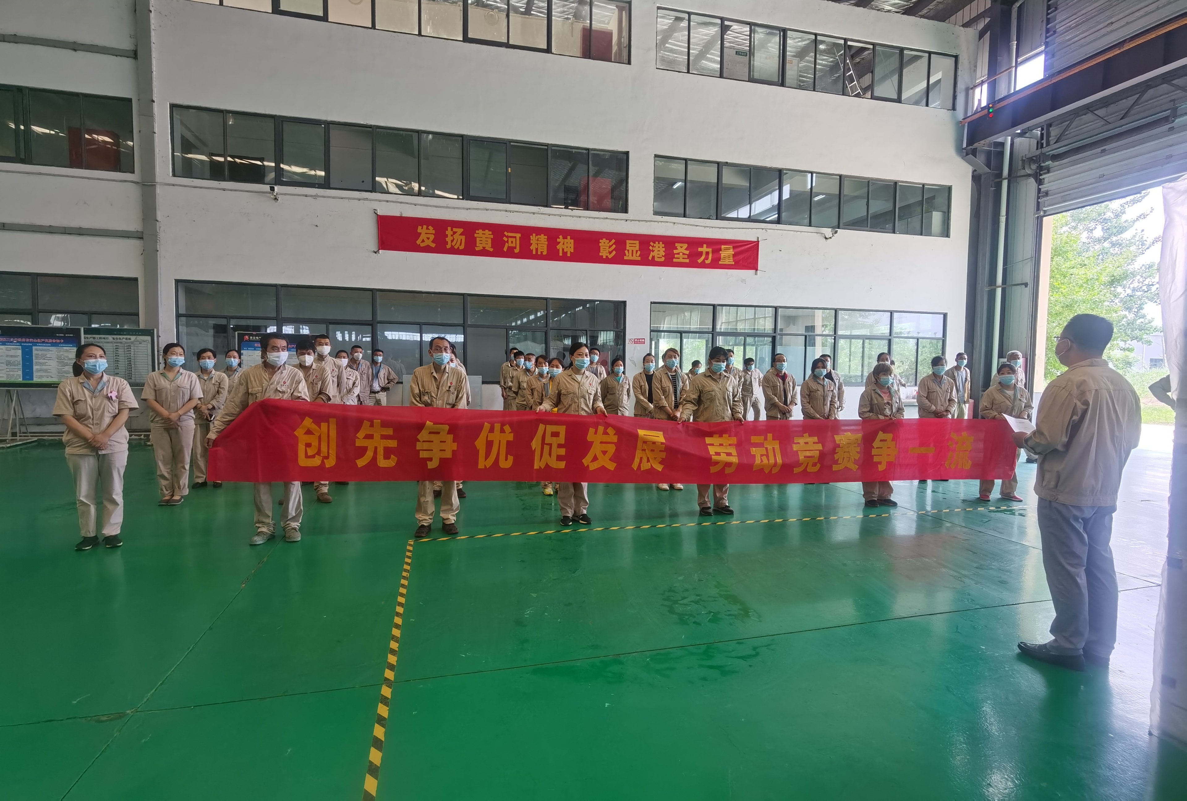 8月3日上午10点18分,港圣公司生产系统“比进度、赛质量”劳动竞赛活动动员会在5号车间召开,副总经理李国斌主持会议,生产部、技术部、质检部等部门员工参会。